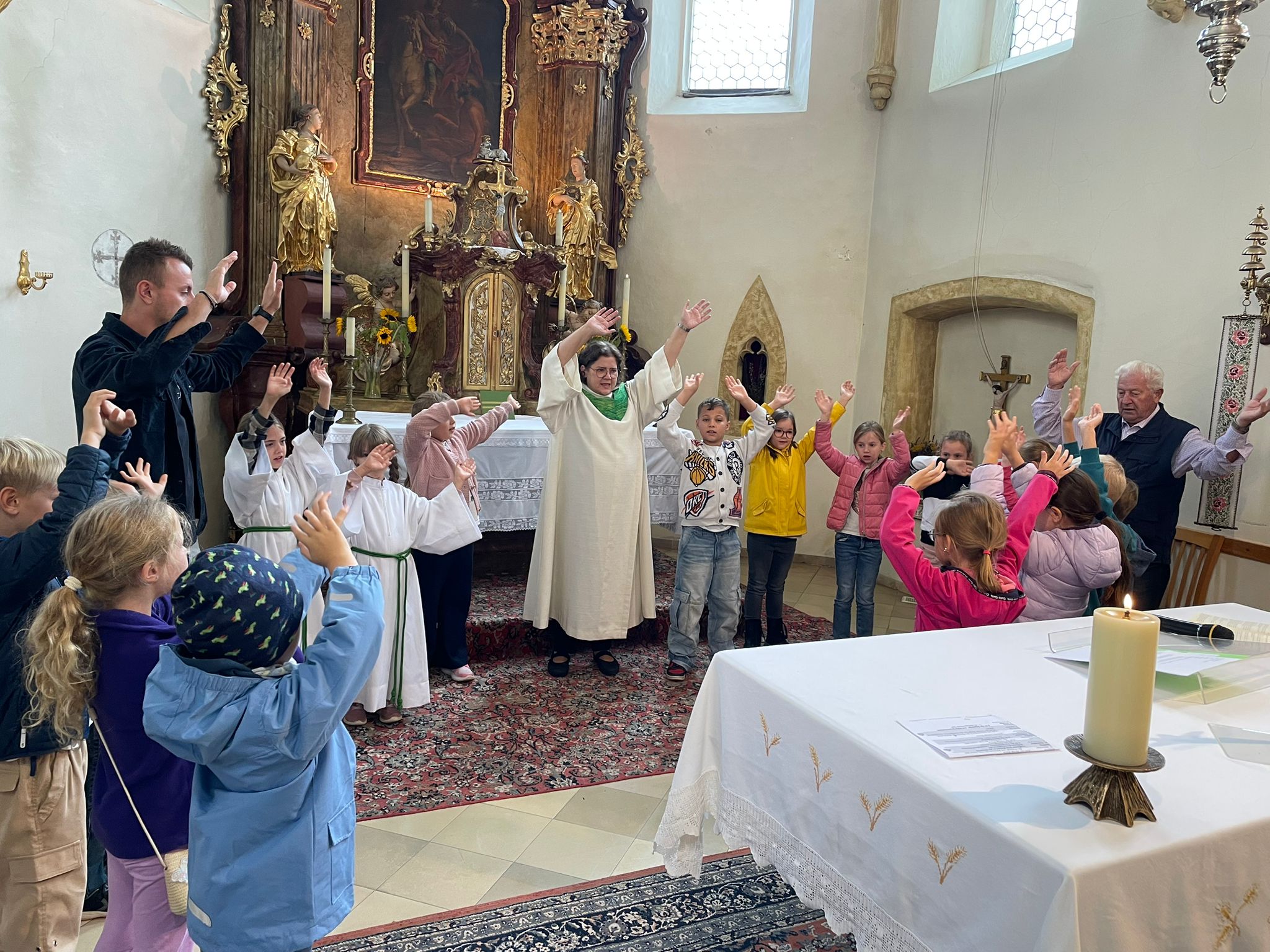 Mit großer Begeisterung feierte die Volksschule Markersdorf- Haindorf am 29. September das Erntedankfest in der ortseigenen Kirche.