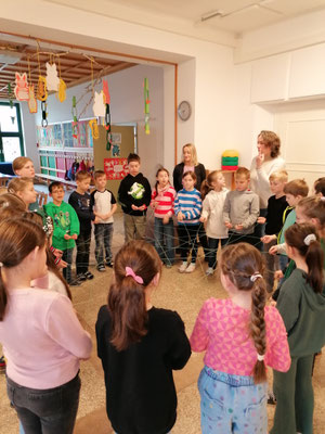 Am 11. März begrüßten SL Angelika Rabacher und Bürgermeister Fritz Ofenauer BM Martin Polaschek, LR Christiane Teschl-Hofmeister, BD Karl Fritthum und SQM Sabine Stiefler in unserer Schule. Die SchülerInnen der 3. und 4. Klasse hießen den Besuch mit einem Lied zur Begrüßung herzlich willkommen. Anschließend gab es für alle verschiedene Leseaktivitäten im gesamten Schulhaus und in unserer Schulbibliothek. Zum Schluss sangen die Kinder der Kreativwerkstatt in Gebärdensprache zu "A thousand years" von Christina Perry.